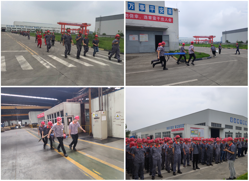 演練前公司制定了詳細的演練方案,并組織各部門、應急小組成員講解應急避震的保護措施和震后自救知識。6月27日下午13:20分演練警報響起,各部門、車間人員立即進入緊急避險狀態,13:22疏散警報響起,辦公樓、生產車間人員迅速、有序地組織人員疏散到緊急集合部并進行人員統計。當發現有人員受傷被困時,搶險救援組成員佩戴好防護用品及救援器材迅速開始營救工作。整個過程經過10分鐘左右,人員疏散、警戒、救護等工作全部完成。總指揮宣布演練結束。