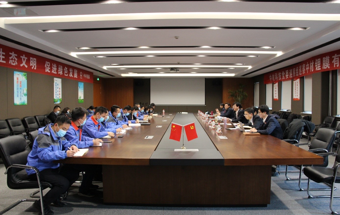 - 12月15日,中國建材集團黨委常委、副董事長李新華到中材鋰膜調研并講授專題黨課。中國建材集團科技管理部主任郅曉、副主任鄒宇知、祝偉麗,辦公室高級經理王維、中材科技黨委書記宋伯廬,中材鋰膜中層及以上干部、基層黨員、職工代表共近80人到場聆聽。