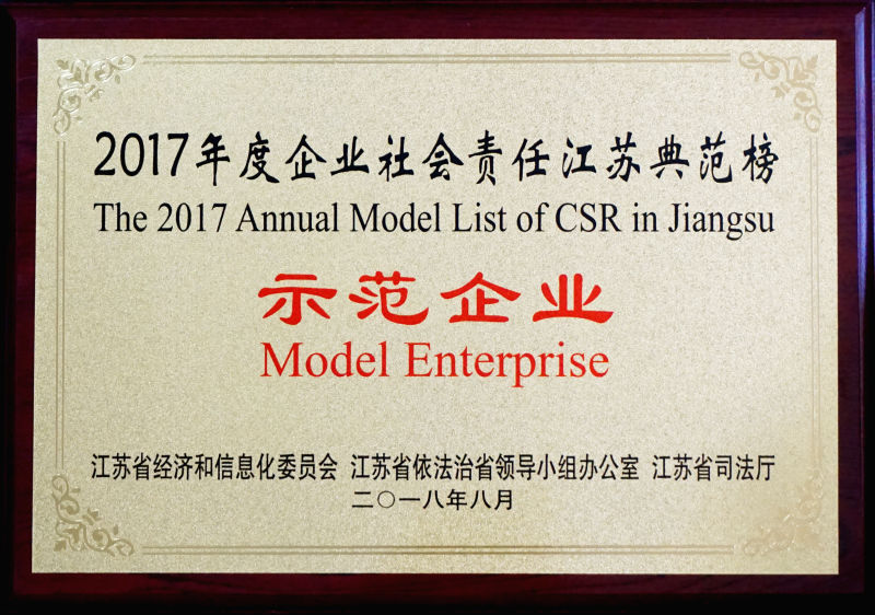 8月28日,由江蘇省經信委等主辦的“新時代江蘇企業社會責任建設與傳播發布會”在南京舉行,會上發布了“2017年企業社會責任評價總報告”,揭曉了“2017年度企業社會責任江蘇典范榜”。江蘇省對標國際標準,通過對不同行業、不同規模的企業,在創新發展與質量保證、協調發展與和諧關系、綠色發展與安全環保、開放發展與誠信共贏、共享發展與公益慈善等五大方面的社會責任實踐進行了綜合評價,南京玻纖院各項指標均位居前列,榮獲2017年度社會責任示范企業稱號。