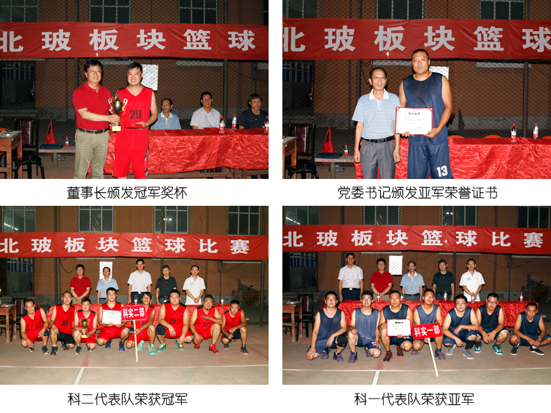 比賽期間,8支代表隊在比賽場上均展現(xiàn)了良好的競技水平。比賽緊張而激烈,精彩接連上演。經(jīng)過角逐,冠亞軍爭奪戰(zhàn)于8月21日晚在科實二部代表隊和科實一部代表隊中上演,兩支實力相當(dāng)?shù)膭怕迷僖淮谓讳h。比賽一開始雙方就咬得很緊,緊逼、掩護(hù)、盯防、爭搶,配合默契,高潮迭起。板塊領(lǐng)導(dǎo)、職工及家屬的加油聲更為隊員增添了動能和激情。經(jīng)過頑強(qiáng)的拼搏,最終,科實二部代表隊奪得冠軍,蟬聯(lián)五連冠,科實一部代表隊獲得亞軍,科實三部代表隊和葉片公司代表隊并列第三名,保障中心代表隊和汽車復(fù)材公司代表隊獲得勇于拼搏獎,樹脂代表隊獲得優(yōu)秀組織獎,新生代表隊獲得精神文明獎,北玻板塊領(lǐng)導(dǎo)為各代表隊頒發(fā)了獎杯和證書。